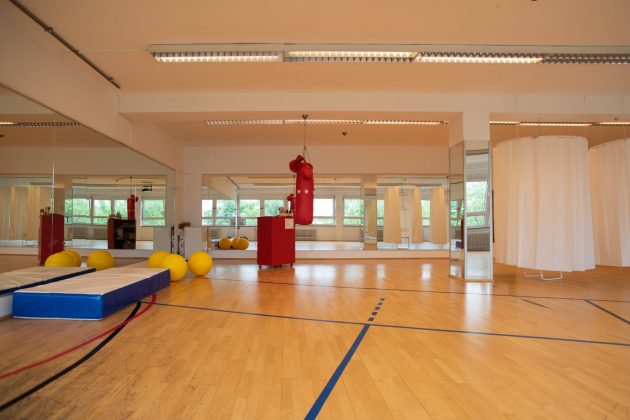 Das temporäre Fitnessstudio „Fit&Fun“ fand in dem Laimer Zwischennutzungsprojekt Z ein Zuhause. Nur kleine räumliche Veränderungen mussten vorgenommen werden, um den Raum für Sportkurse und somit für die Bürgerinnen und Bürger Laims nutzbar zu machen, da die Räumlichkeiten schon vorher als Fitnessstudio dienten.
