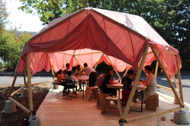 Der Habibi Dome im Stuttgarter Stadtteil Hallschlag ist ein offenes Zelt und ein Veranstaltungsort für viele verschiedene Angebote. Home not Shelter! konnte den Habibi Dome in den letzten vier Jahren immer wieder nach Stuttgart bringen. Entstanden ist das Projekt 2016 in der interkulturellen Werkstatt Habibi.Works in Nordgriechenland. Ziel war es, Menschen zu unterstützen, die nach ihrer Flucht an den Außengrenzen Europas gestrandet waren.
