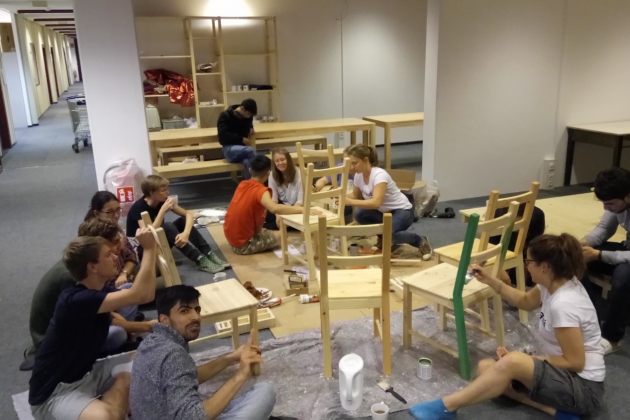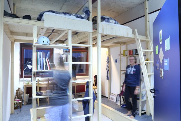 Für diesen Standort wurden in Zusammenarbeit mit Studierenden der TU Wien und der TU Berlin alternative Wohnformen entwickelt und erprobt. In diesem Zusammenhang entstand an der TU Wien unter Leitung von Alexander Hagner die Studierendengruppe Traudi, welche maßgeblich zur Organisation und Entstehung des Projekts beitrug. Den gewählten Slogan “Trau-di” (Traue dich!) meinten die Studierenden ernst. Die Bewohner*innen durften und sollten ihrer Zimmer mitgestalten und beim Aufbau mitarbeiten. Die Studierenden entwickelten dafür eine Konstruktion, die individualisierbar und einfach aufzubauen ist. Dieser Prozess erzeugte ein Gemeinschaftsgefühl bei der diversen Bewohnerschaft. Die Aneignung der Räumlichkeiten über den Selbstbauaspekt förderte die Identifikation mit dem gesamten Gebäude. Während sich Traudi mit der Gestaltung der individuellen Zimmer beschäftigte, entwickelten Studierende der TU Berlin unter Leitung von Prof. Ralf Pasel und Dozent Max Hacke Konzepte für die Gemeinschaftsräume des HAWI und setzten diese vor Ort um.