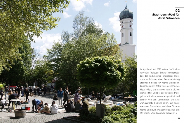 Die Publikation dokumentiert Prozesse und Erkenntnisse, die aus dieser Kooperation zwischen Studierenden und Lehrenden, den Bürger*innen Markt Schwabens, dem örtlichen Wertstoff- und Bauhof und dem social design lab entstanden sind. Nicht nur hat sich die Entwurfsaufgabe als geeignet und bereichernd herausgestellt, auch die Reaktionen der Bürger*innen haben den Ansatz bestätigt und die Beteiligten bestärkt, diesen aus seiner Ideenfindungsphase in eine Nächste zu überführen. In dieser wird der von den Bürger*innen gewählte Siegerentwurf in der Kategorie Sitzelemente, die „Brotzeitbank“, in einem kooperativen Designprozess erneut überarbeitet und, mit dem langfristigen Ziel dieses Möbel vor Ort am Mehrwerthof für den öffentlichen Raum Markt Schwabens zu produzieren, weiterentwickelt.